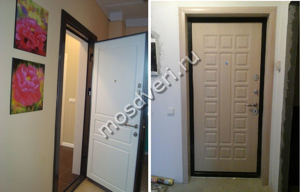 Образцы отделки белых входных металлических дверей в квартиру